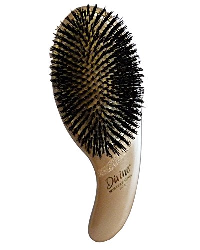 Setole 100% cinghiale: Le setole 100% puro cinghiale di primo taglio che utilizziamo per le nostre spazzole lisciano i capelli durante la spazzolatura e conferiscono brillantezza e volume.