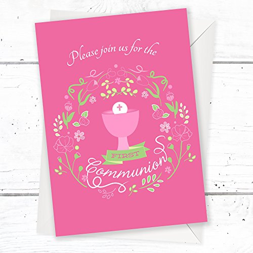 Confezione da 20 inviti per la prima comunione delle ragazze di alta qualità, formato A6 (105 mm x 148 mm). Stampato professionalmente su entrambi i lati. Fornito con buste bianche