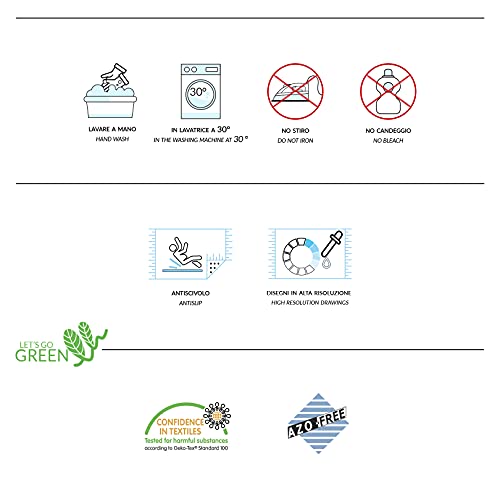 Il fondo antiscivolo e la certificazione OEKO-TEX, lo rendono un prodotto sicuro e privo di sostanze e additivi chimici.