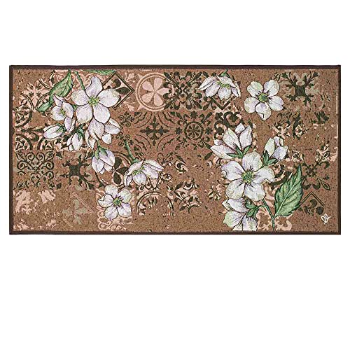 OLIVO.shop | SPRINT BLOOM Tappeto da cucina maioliche, passatoia cucina antiscivolo lavabile floreale, varie misure (50X110 FIORI MARRONE)