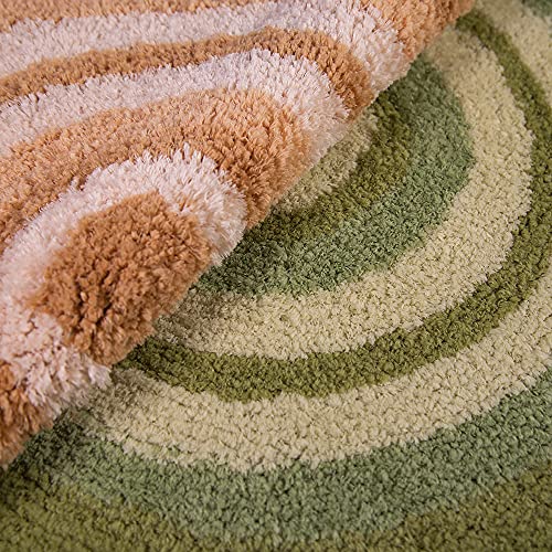 OLIVO.shop | LAKE tappeto bagno rotondo a righe bicolore in cotone e microfibra, con fondo antiscivolo in lattice, 6 colori 2 misure (Beige, 75 cm)