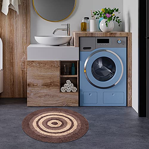 OLIVO.shop | LAKE tappeto bagno rotondo a righe bicolore in cotone e microfibra, con fondo antiscivolo in lattice, 6 colori 2 misure (Marrone, 55 cm)