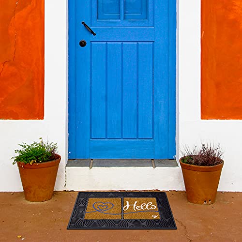 OLIVO.shop | WINDOW Zerbino asciugapasso in gomma antiscivolo con inserti in cocco naturale stampato, 3 disegni 40x60 cm (HELLO)