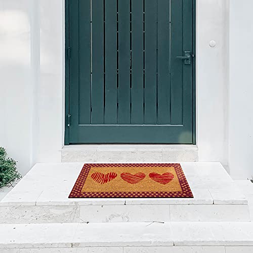 OLIVO.shop | WISH Zerbini da esterno in cocco naturale, zerbino ingresso esterno interno in cocco, tappeto ingresso 45x75 cm (CUORI)