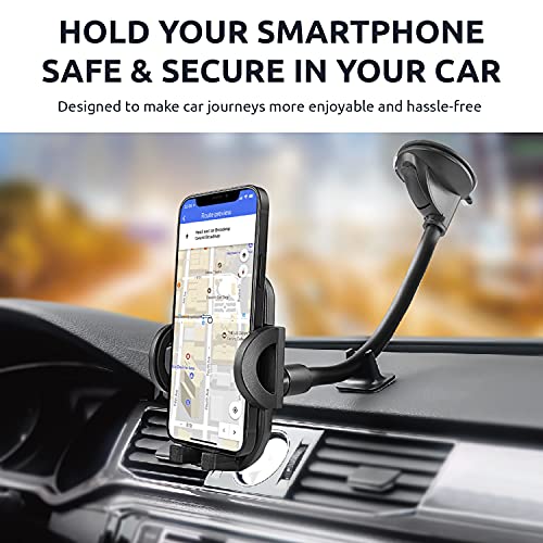 Si adatta a qualsiasi parabrezza. Il braccio a collo di cigno regolabile significa che questo supporto universale si adatta a qualsiasi parabrezza. Mantieni il tuo smartphone in qualsiasi angolazione, piegalo per adattarlo alla posizione di guida più comoda.
