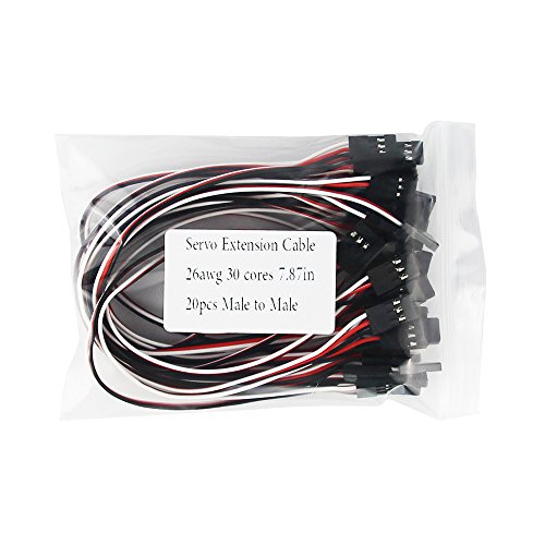 OliYin 20pcs 26awg 20cm 200mm Quadcopter Servo Extension Lead Futaba JR Cavo Maschio a Maschio
