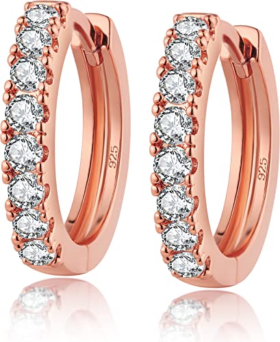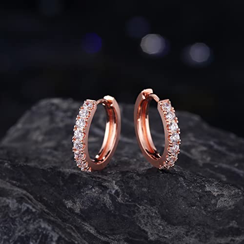 Oliyotz Orecchini a Cerchio per Donna in Argento Sterling 925 con 5A Zirconia Cubica Placcato Oro Bianco/Giallo 14mm 16mm (14mm Oro Rosa) (E041)