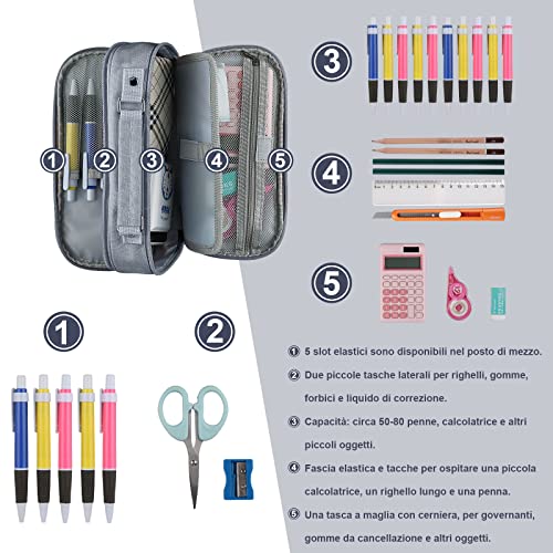 Grande Capacità: la dimensione dell'astuccio portapenne è 24*7*11 cm. Questo astuccio è progettato con 2 scomparti principali separati per fornire più spazio e mantenere la cancelleria in ordine. Lo scomparto principale può contenere fino a 70-80 penne e matite;