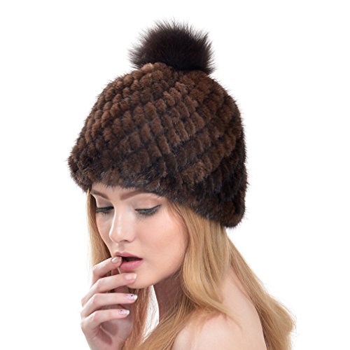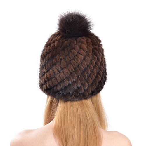 OLLEBOBO Vera Pelliccia Visone Cappello Berretto da Donna con Pon-pon