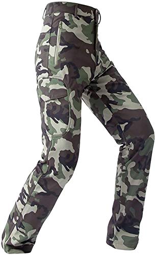 OLOEY Pantaloni Softshell mimetici Tattici per Uomo Pantaloni Cargo Foderati in Pile Pantaloni da Sci Impermeabili Antivento Pantaloni Lunghi da Caccia (Jungle Camouflage,S)