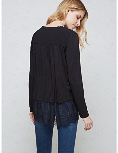 Oltre: Blusa bimaterica con Dettagli in Pizzo, Maniche Lunghe Nero S (Italian Size)