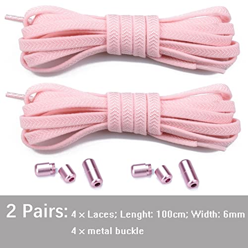 Olukssck 2 Paia Elastici Lacci con Chiusura in Metallo, No Tie Lacci delle Scarpe Lacci Senza Nodo per Scarpe da Ginnastica,Scarpe da Corsa, Scarpe Casual(100cm), Rosa Caldo