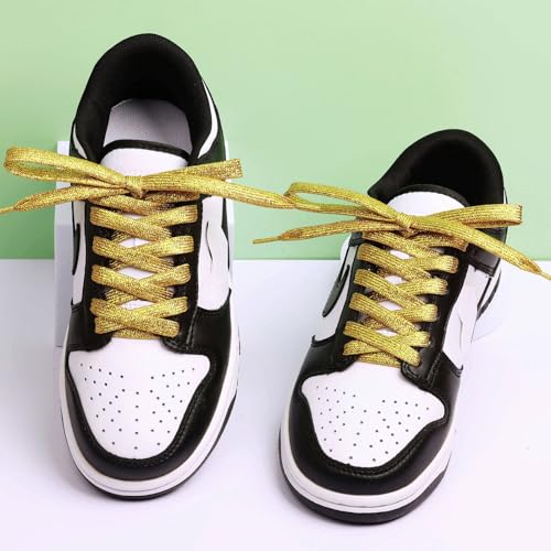 Olukssck 2 paia Lacci Piatti Glitter Metallici Premium, Stringhe Scarpe Sportive, Lacci per Sneakers Resistenti, Lunghezza 80-100 - 120-140 - 160 cm, Larghezza 10 mm, Oro Scuro, 120cm