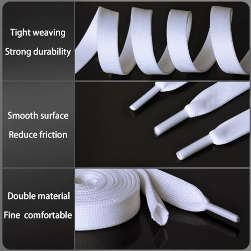 Olukssck Lacci Scarpe Piatti Arcobaleno[2 Paia], Stringhe Scarpe Colorati da Ricambio per Scarpe Sportive, Scarponcini, Larghezza 12mm,Bianco (140cm)