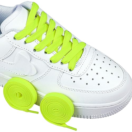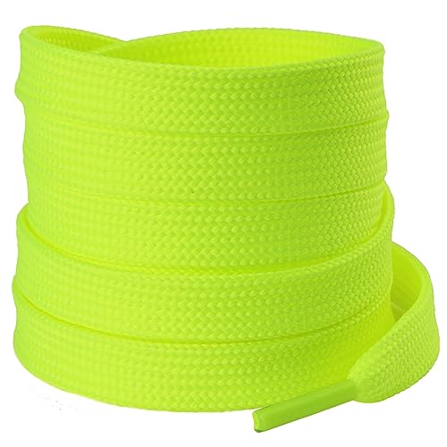 Olukssck Lacci Scarpe Piatti Colorati, [2 Paia] Stringhe Scarpe Resistenti Lacci da Ricambio per Scarpe Sportive, Scarponcini, per Adulti e Bambini - Larghezza 10 mm, Giallo Neon, 145cm