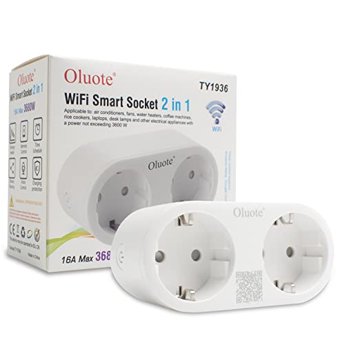 Oluote Presa Intelligente, WiFi Smart Plug 2 in 1, Funzione Timer, APP Controllo Remoto, Assistant per il Controllo Vocale, Smart Plug per Casa Compatibile con Alexa e Google Assistant
