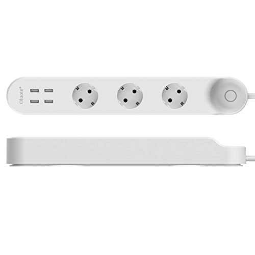 Oluote Wifi Smart Plug, 3 Prese e 4 USB Mini Prese Intelligenti Compatibili con Alexa e Google Assistant per il Controllo Vocale, Telecomando e Funzione Timer, Supporto per Android/IOS