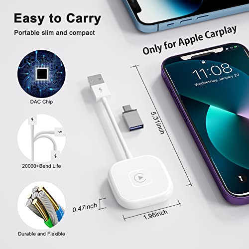 Connettività senza soluzione di continuità: questo carplay wireless consente di collegare l'iPhone al sistema di infotainment dell'auto senza fili. È sufficiente collegare l'adattatore alla porta USB dell'auto per usufruire dell'adattatore wireless carplay. Dopo la prima connessione, non dovrete più preoccuparvi dei collegamenti via cavo. Potete semplicemente lasciare il vostro telefono in tasca per una maggiore flessibilità e comodità.