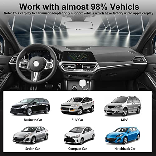 Ampia compatibilità: l'adattatore wireless apple carplay supporta iPhone 6 e superiori ed è compatibile con qualsiasi modello di auto dotato di apple carplay wireless. Il doppio Wi-Fi 2.4GHz+5GHz e il Bluetooth 5.0 garantiscono una connessione stabile e veloce. Il nostro adattatore wireless Apple CarPlay è compatibile con i modelli di veicoli prodotti dal 2017 e dotati di Apple CarPlay wireless.