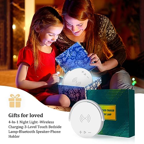 【Multifunzione 4 in 1 aggiornato al 2023】Cassa Portatile Bluetooth con luce integrata 4 funzioni, altoparlante HiFi Bluetooth 5.0 + lampada da comodino touch dimmerabile + ricarica wireless da 15 W + funzione di supporto regolabile a 180°. Idee versatili e design moderno sono ottimi regali per i tuoi cari o amici, familiari, colleghi, ecc.