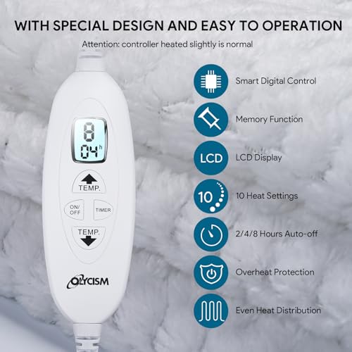 Olycism 180 x 130 cm Coperta Elettrica con Spegnimento Automatico con 10 Livelli di Riscaldamento e 9 Timer di Protezione Contro il Surriscaldamento Coperta Elettrica per Casa Ufficio Lavabile