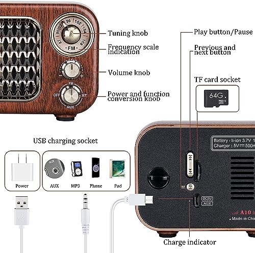 Olycism Radio Portatile con Altoparlante Bluetooth Retro FM Radio con Batteria Ricaricabile da 1100 mAh Supporta TF Card AUX