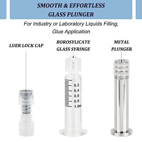 OLYCRAFT 10pcs 1ML Siringa in vetro borosilicato Siringa Luer Lock resistente al calore senza ago Siringhe di erogazione in vetro riutilizzabili per l'industria o il laboratorio Liquidi Colla Olio
