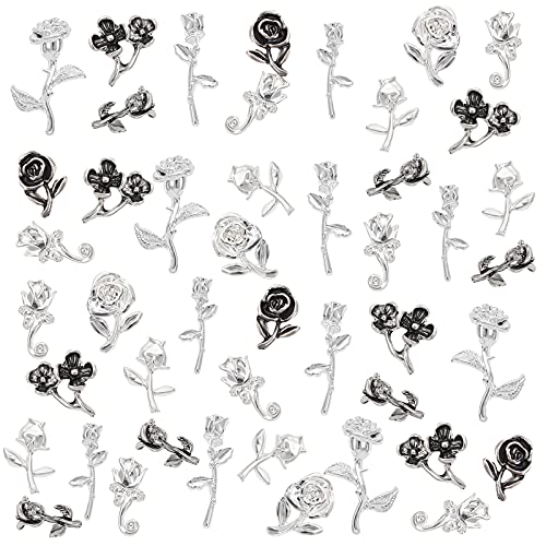 OLYCRAFT 135pz Fiore a Tema Riempitivi in Resina Ciondolo di Rosa Fiore di Pruno Lega Cabochon Resina Epossidica Forniture Decorazioni per Unghie La Creazione di Gioielli - Argento Antico e Argento