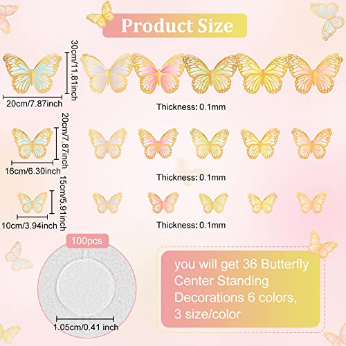 Confezione e dimensioni: riceverai 36 centrotavola a farfalla e 1 foglio adesivo rotondo, ci sono 3 dimensioni, piccole dimensioni: circa 100 x 150 x 0,1 mm, 12 pezzi;