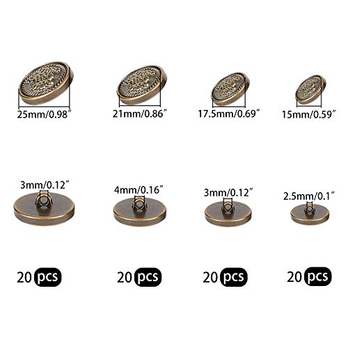 OLYCRAFT 80pcs Bottoni In Plastica per Blazer Bottoni Con Gambo Piatto In Lega Con Stemma A Corona 15mm 18mm 21mm 25mm Set di Bottoni Vintage Antichi per Giacca, Abiti - Bronzo Antico