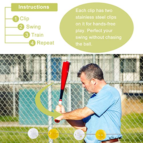 La confezione include: il set da allenamento per battute da baseball include 4 palline da allenamento in plastica, 2 impugnature in poliestere, 2 fermagli girevoli in lega e filo in acciaio inossidabile 304 calibro 12. Strumenti completi, facili da usare.