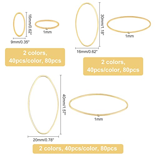 【Cosa ottieni】-- Ci sono 240 pendenti con cornice ovale in ottone in 3 dimensioni e 2 colori, 80 pz per taglia. Puoi ottenere abbastanza anelli di collegamento con orecchini a cerchio ovali per creare i tuoi gioielli.