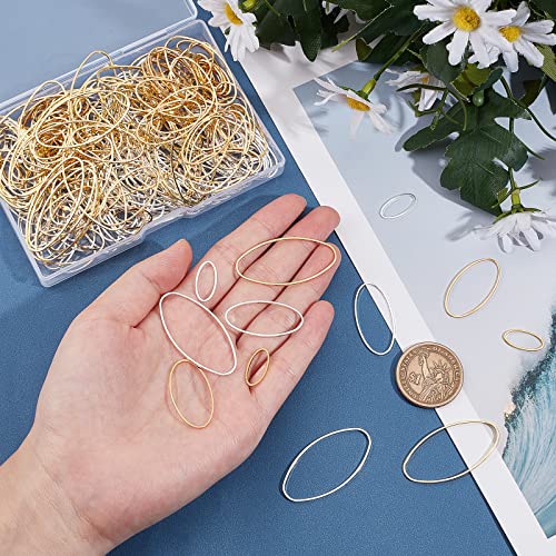 OLYCRAFT 240 PCS Ciondolo con Cornice Aperta Ciondoli Orecchini Ovali Anelli in Ottone Ovali Lunetta Aperta per Orecchini Creazione di Gioielli Fai da Te - Placcato Oro e Argento