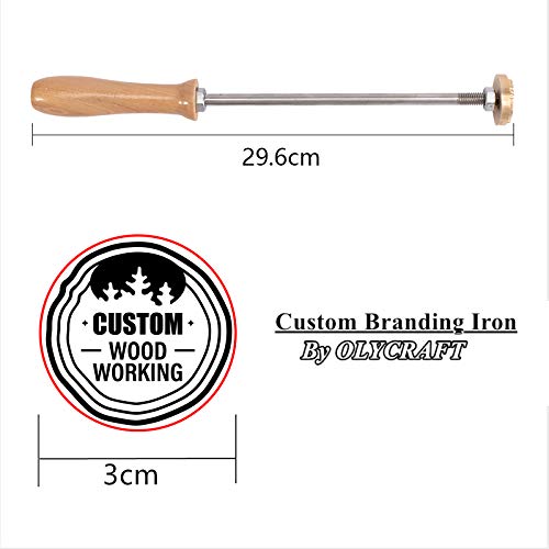 OLYCRAFT Marchio in Legno Personalizzato Ferro 3CM Marchio in Pelle Timbro in Ferro Logo Personalizzato Timbro Termico per Barbecue con Testa in Ottone e Manico in Legno - Foresta N. 2