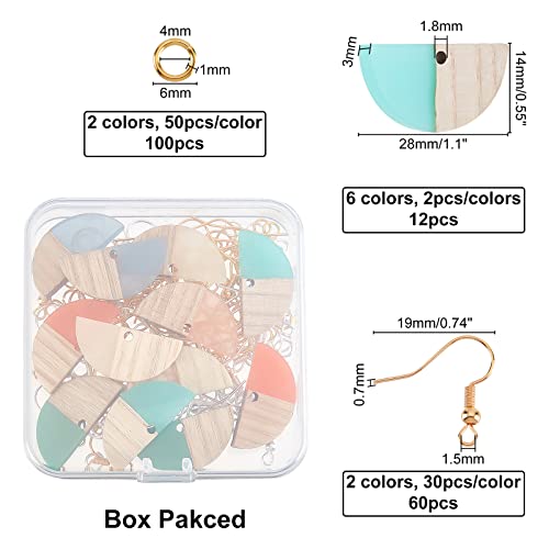 OLYCRAFT 172 orecchini in legno semicircolare in resina di noce, set di orecchini in legno di noce, accessori con gancio per orecchini, anelli per la creazione di collane, 6 colori