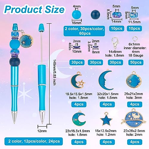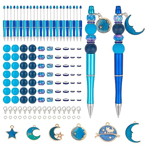 OLYCRAFT Set di 268 penne con perline blu serie blu penne a forma di luna stella a tema perline in plastica penna fai da te kit per la creazione di perline include perline blu luna stella ciondoli
