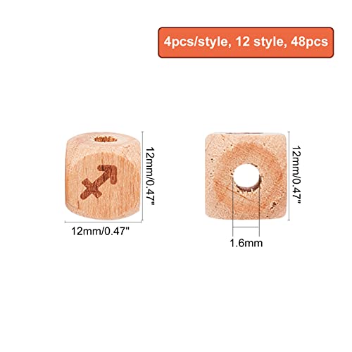 OLYCRAFT 48 perline in legno a forma di cubo, 12 mm, perline in legno naturale, segni zodiacali Burlywood, perline in legno per la creazione di gioielli e progetti fai da te