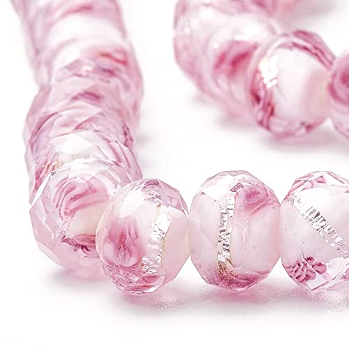 OLYCRAFT 70 pezzi 6 ~ 8 mm pellicola argentata in vetro lampwork perle di vetro fatte a mano, perle rotonde sfuse per rosario fai da te gioielli fai da te con foro da 2 mm - schegge rosa