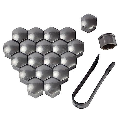 Olymajy 20 Pezzi Tappi Dadi Ruota, copribulloni Auto Colorati, Tappo a Vite Ruota Universale Tappo di Copertura antifurto con Strumento di Rimozione Set per Automobili (21 mm, Grigio)
