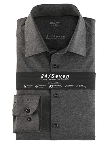 Olymp Uomo Camicia Business a Maniche Lunghe Level Five 24/Seven,Body Fit,New York Kent,Anthrazit 67,42