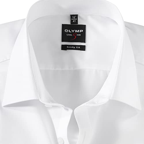Olymp Uomo Camicia Business a Maniche Lunghe Level Five,Body Fit,New York Kent,Weiss 00,37