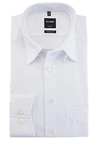 Olymp Modern fit camicia da uomo (leggermente sfiancata) in puro cotone chambray, naturalmente stirare, con colletto Tab, Combi polsini e tasca sul petto (logo), Lunghezza braccio 64 cm, colore bianco
