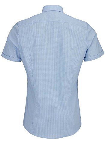 Olymp Level Five Body Fit - Camicia con braccio corto taglio aderente 97% cotone 3% XLA Comfort Stretch New Kent facili da senza taschino Vichy Karo Design azzurro/bianco