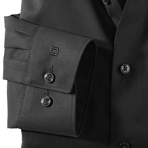 OLYMP Modern Fit Camicia da uomo a maniche lunghe, senza tasca sul petto, collo lungo e polsino combinato, taglio leggermente sciancrato, non si stira e non fa grinze, 100% cotone, tinta unita, colore nero