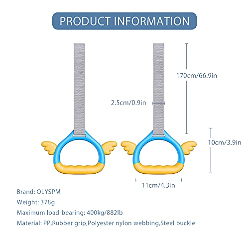 OLYSPM Anelli Calisthenics Anelli Ginnastica Anelli Palestra,Regolabili Lunghi Cinghie,Progettato per i Bambini,Anelli Crossfit per Suspension Training, per Casa e Esterni,Carico Massimo 400kg/882lb