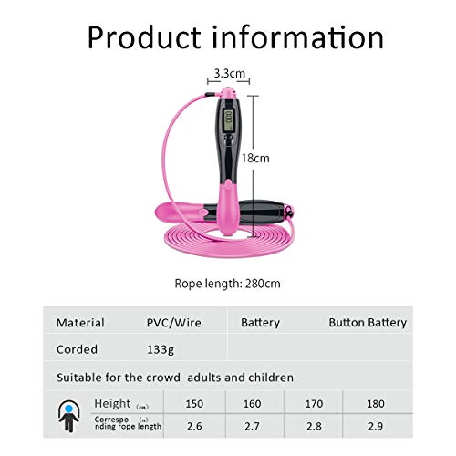 OLYSPM Corda per Saltare,Saltare la Corda Calorie Conta,Corda Salto Regolabile con Timer,con Cuscinetti sferici di qualità. Ideale per Crossfit,Boxing e per Bruciare Calorie(Rosa Scuro)