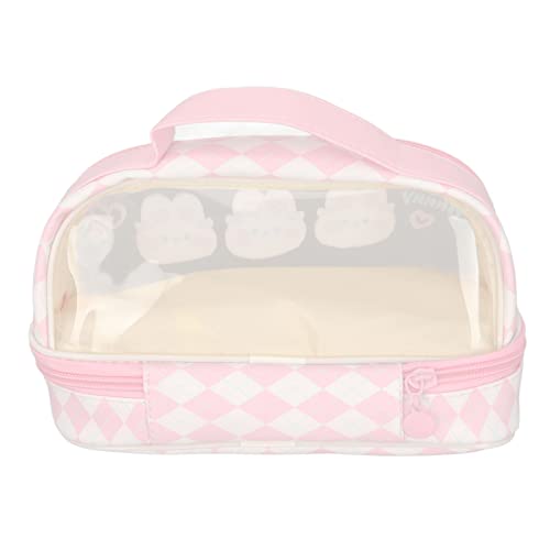 Omabeta Astuccio portapenne, astuccio impermeabile Kawaii a doppio strato rosa multiuso con manico per bambini per la scuola