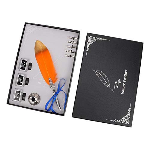 Omabeta Penna stilografica Penna stilografica Europea Vintage Penna stilografica Antica Penna Piuma per Regalo di cancelleria(Arancia)