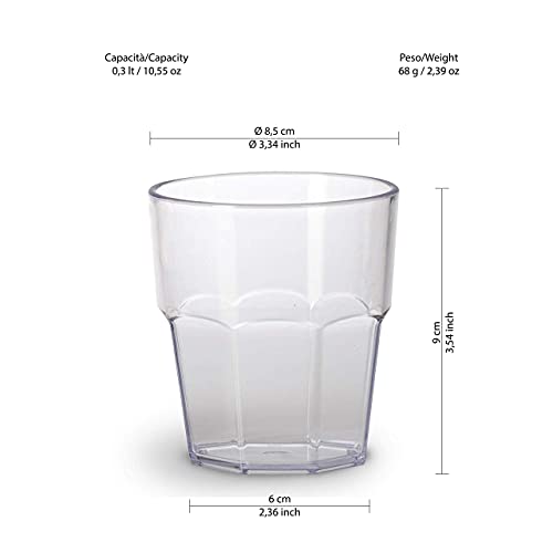 Omada Design Set 6 Bicchieri Acqua da 30 cl, Impilabili, in Plastica per uso Esterno, Lavabili in Lavastoviglie, Made in Italy, Linea Unglassy, Trasparente