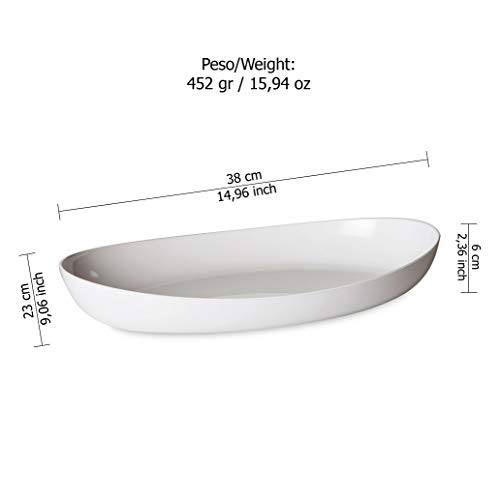 Omada Design Piatto da Portata Grande in Plastica Bicolore, Infrangibile, 38x23x6 cm, Made in Italy, Lavabile in Lavastoviglie, linea Trendy, Bianco